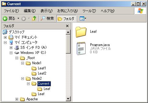 最後にあるのはこの文字です。 図にもあるとおり、『Current』には『Leaf』と『Program.java』と言うファイルがあります。