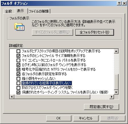 (これはWindowsXPの場合、Windowsの種類によって画面が異なる)